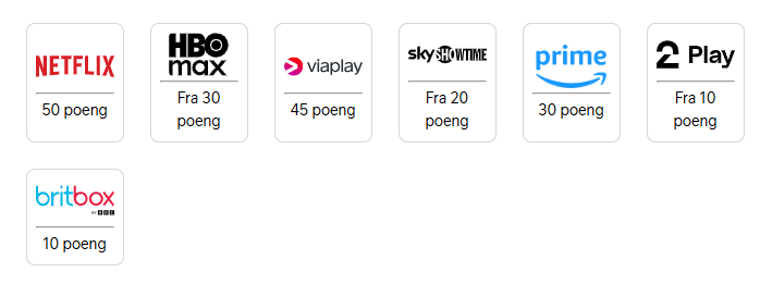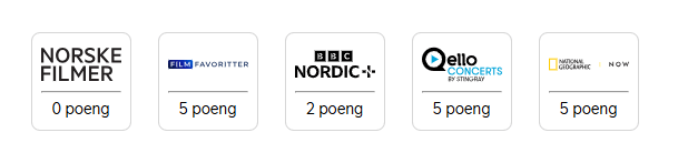 Med 120 poeng kan du til dømes ha Netflix 50 poeng og HBO 40 poeng i pakken din, og framleis ha 30 poeng til andre kanalar du ynskjer.