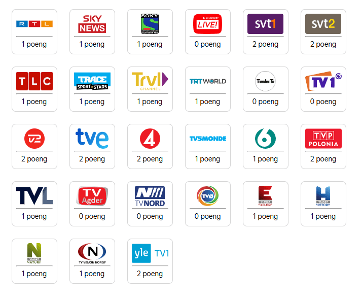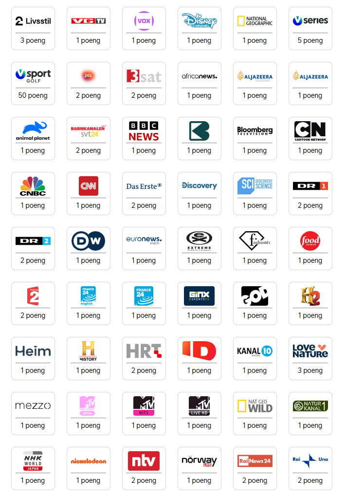 Du har fast tilgang til dei norske kanalane. Desse kan ikkje veljast bort og blir ikkje rekna som ein del av poengpotten.